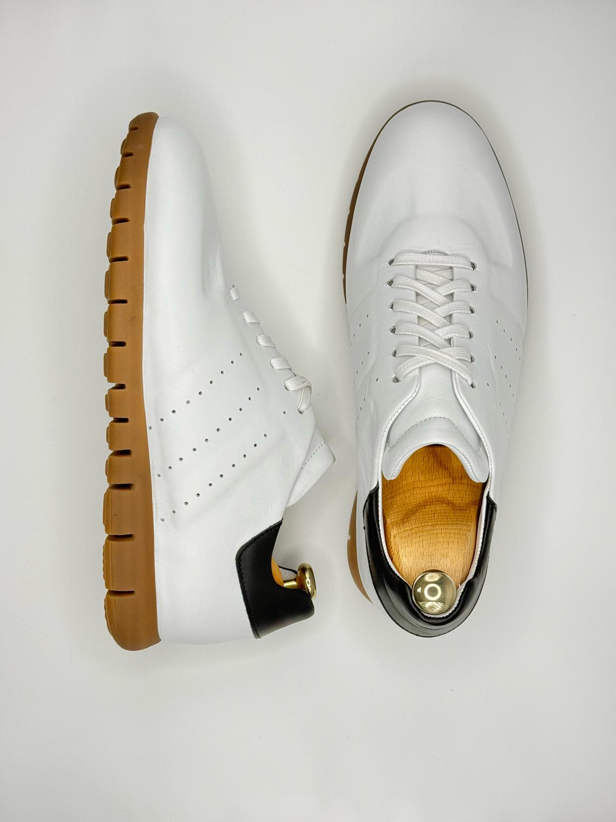 White / Black Full Grain Leather Sport Shoes (Sneakers)