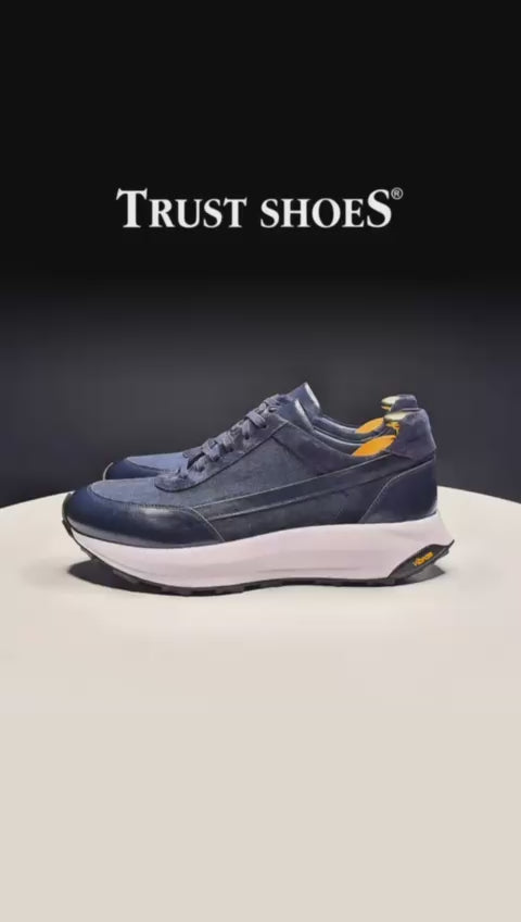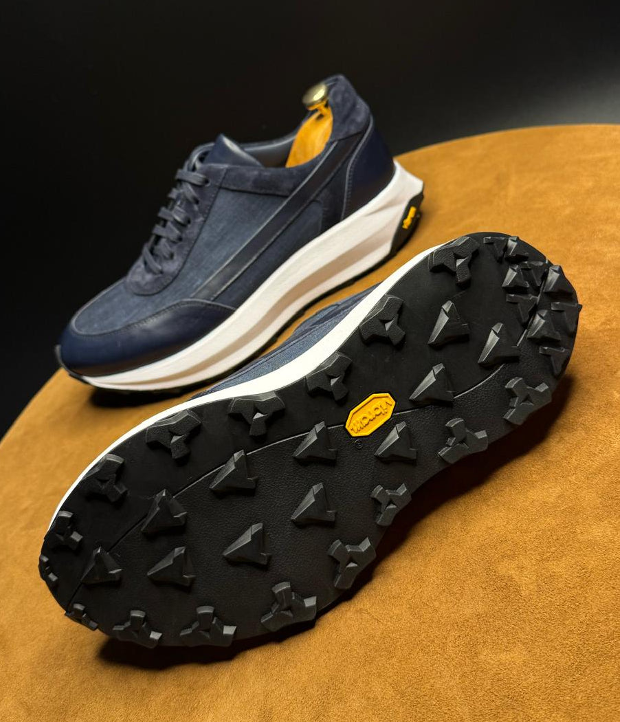 Lacivertin sofistike duruşu ve bağcıklı tasarımın modern çizgileriyle öne çıkan bu erkek spor ayakkabı; şıklık, dinamizm ve üstün konforu kusursuz bir uyum içinde sunar. Üst yüzeyi, yüksek kaliteli dana derisi, süet ve premium kumaşın özenle bir araya getirilmesiyle üretilmiş olup hem estetik hem de uzun ömürlü bir yapı sağlar.