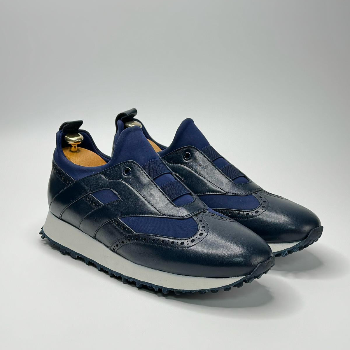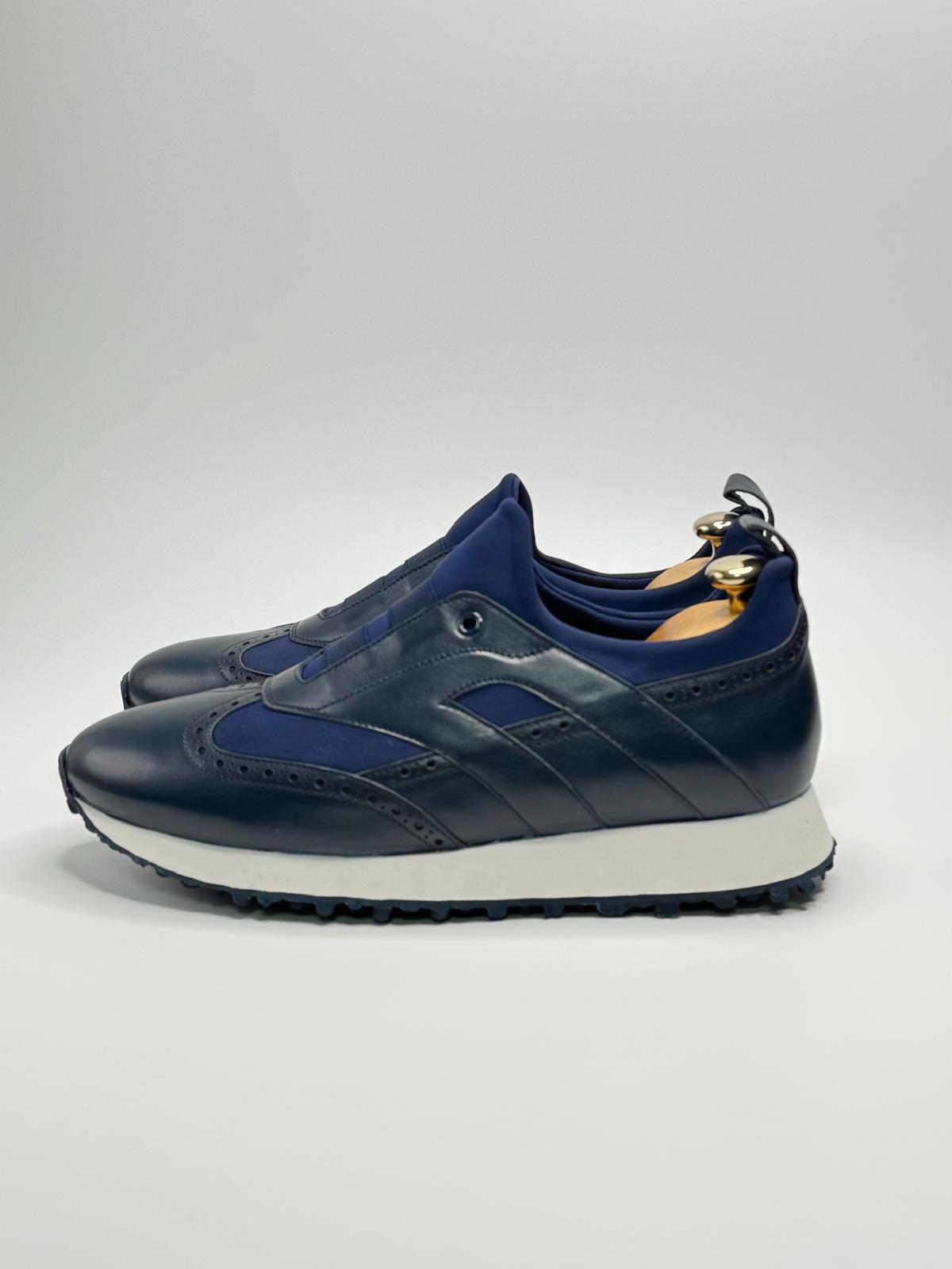 Lacivert Deri/ Lacivert Likra Spor Ayakkabı